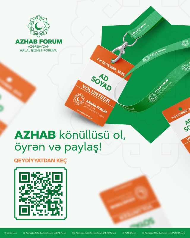 7-8 oktyabr tarixlərində Bakıda keçiriləcək 2-ci Azərbaycan Halal Biznes (AZHAB) Forumuna könüllülərin cəlb olunması üçün müraciətlərin qəbuluna başlanılıb. Forumda könüllü kimi iştirak etmək istəyən gənclər sentyabrın 15-dək müraciət etməlidir.